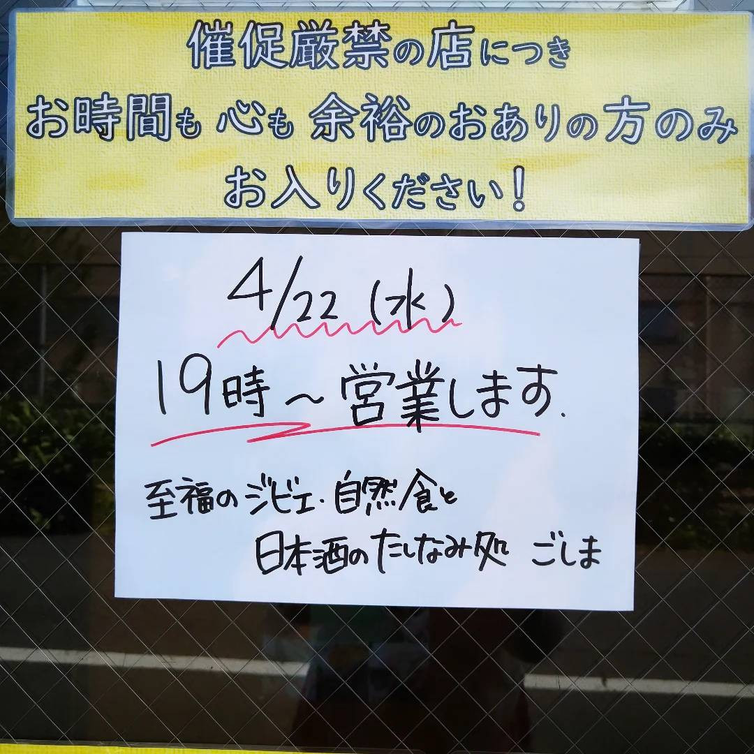 19:00〜23:30←いつもより2時間遅れでの開店です(_ _;)開店時間は遅れても、閉店時間はいつも通りです(_ _;)