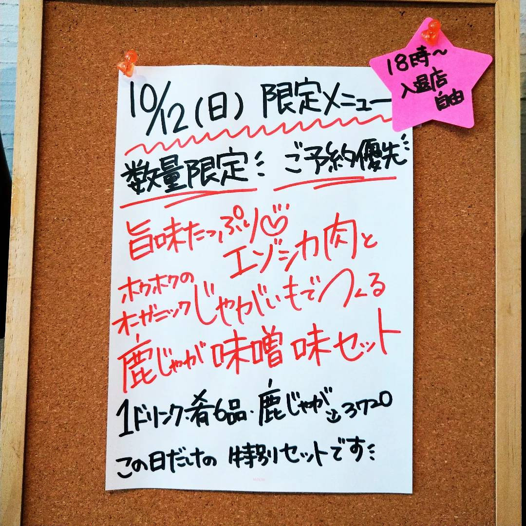 10/12(日) 18時〜入退店自由(最終入店22時)